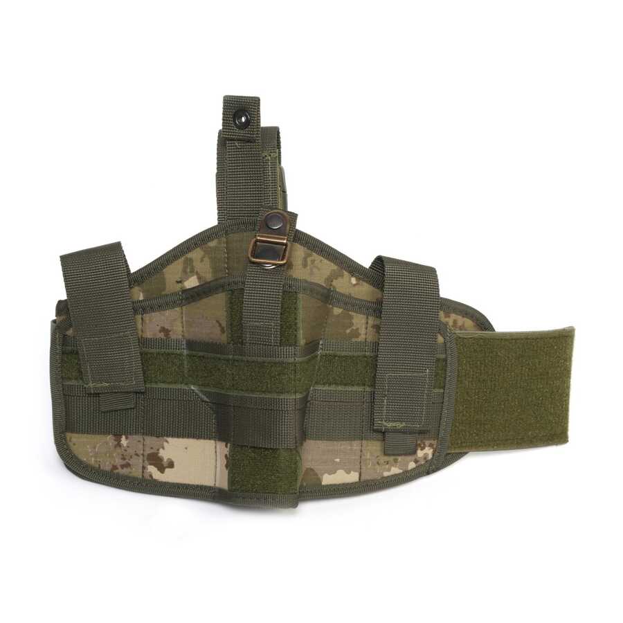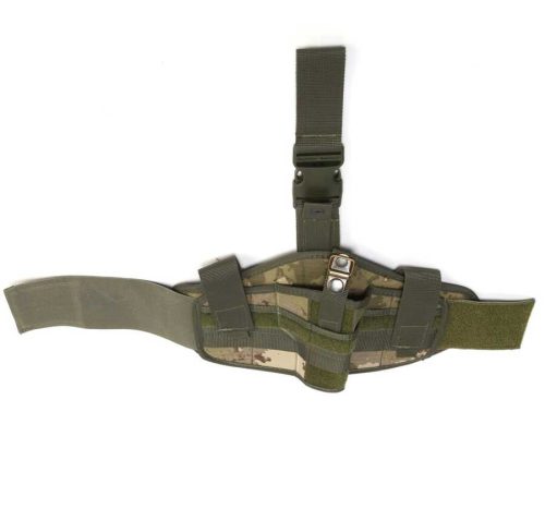 Міцна універсальна пов’язка кобура для пістолета кріпиться на нозі за допомогою ременя навколо ноги і на пояс. Завдяки липучкам, кобуру можна зафіксувати на потрібну висоту та об’єм стегна.