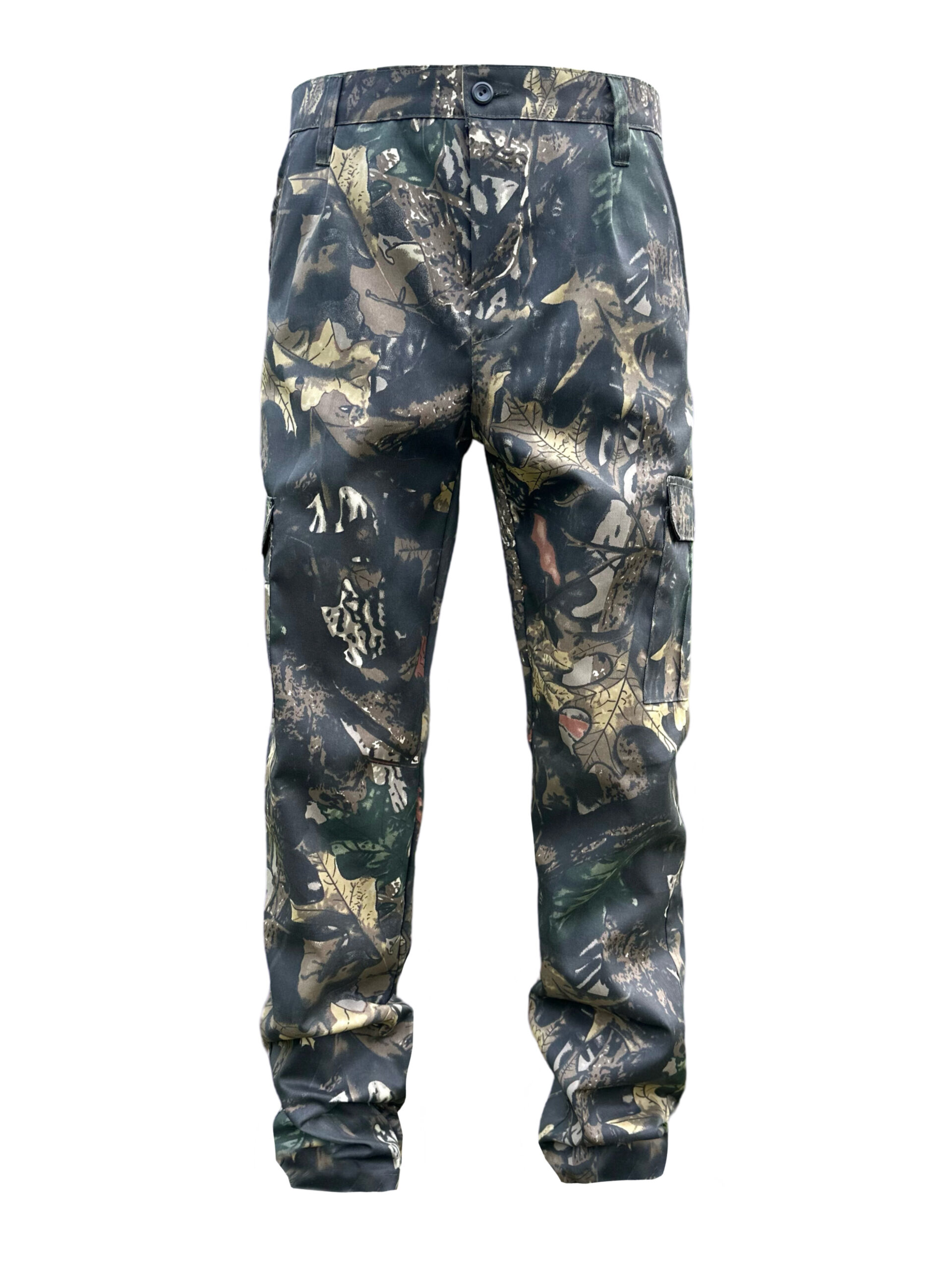 Штани вільного покрою з поясом під ремінь, гульфік на ґудзиках, мають дві бокові врізні кишені на бедрах і дві накладні кишені з клапанами на липучках в районі колін.