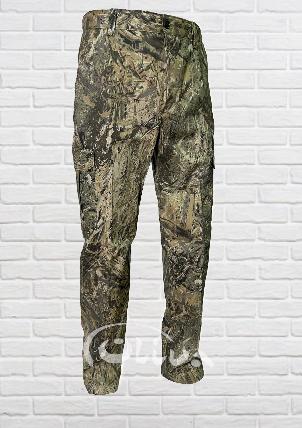 Штани вільного покрою з поясом під ремінь, гульфік на ґудзиках, мають дві бокові врізні кишені на бедрах і дві накладні кишені з клапанами на липучках в районі колін.