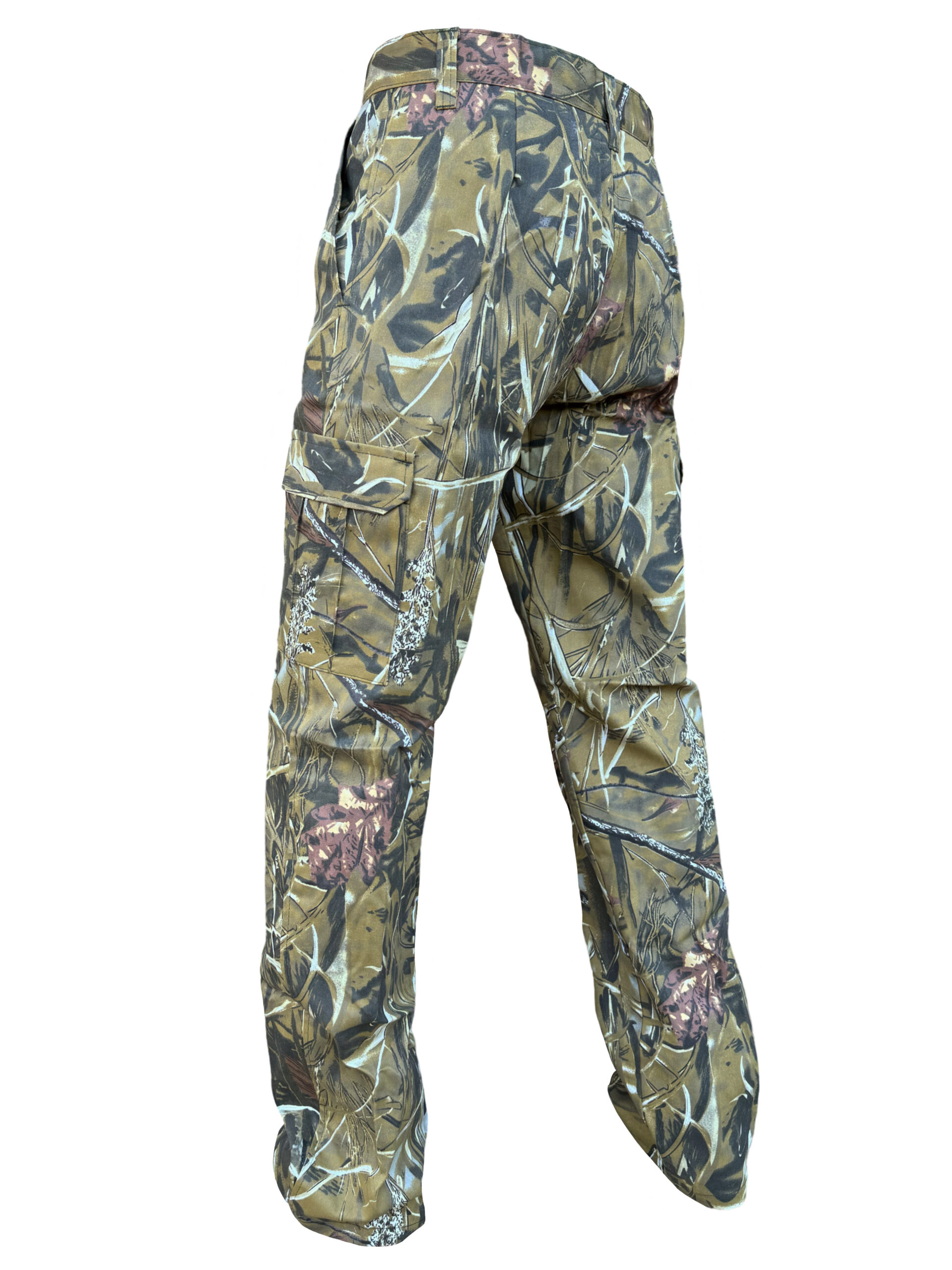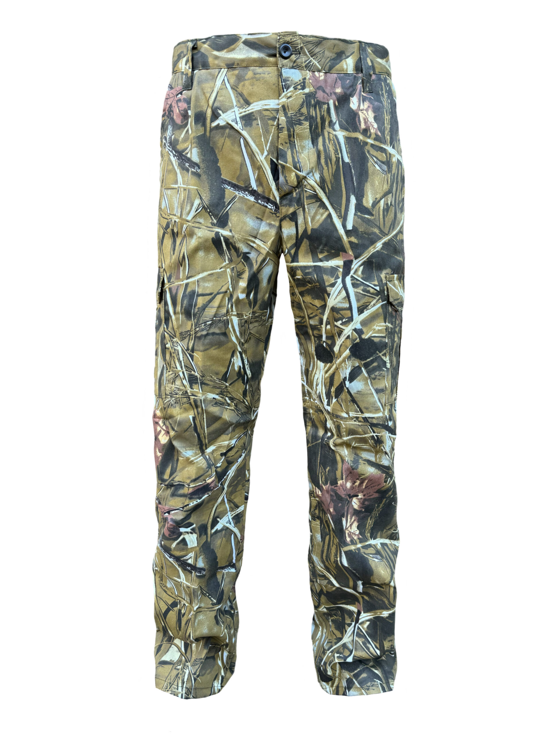 Штани вільного покрою з поясом під ремінь, гульфік на ґудзиках, мають дві бокові врізні кишені на бедрах і дві накладні кишені з клапанами на липучках в районі колін.