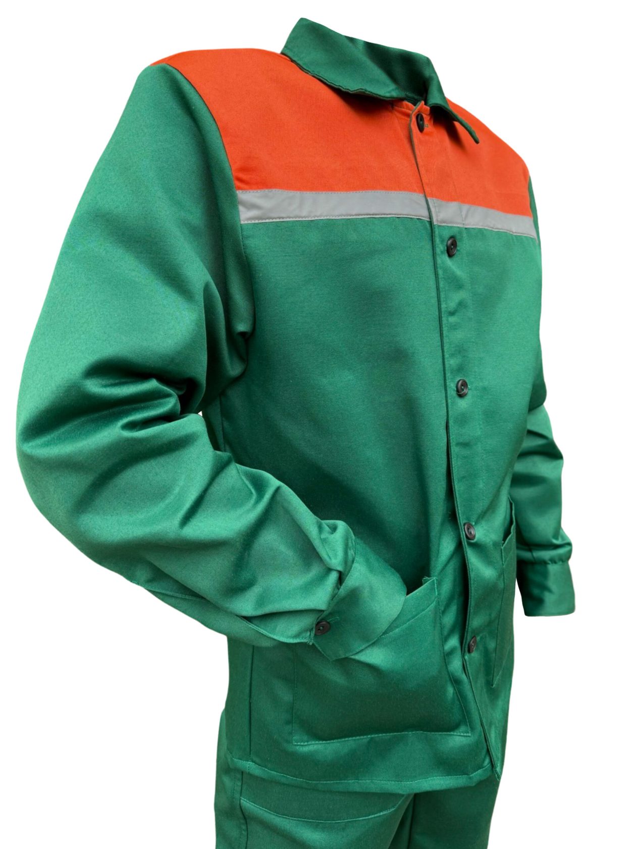 Робочий костюм виконаний з тканини – ДЕФЕНСА, 190 г/м2, 20% х/б 80% поліестер, з водовідштовхувальним просочуванням.