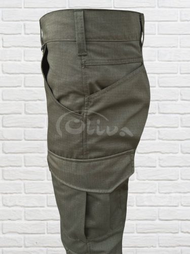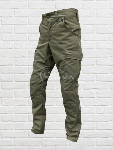 Штани модельного покрою з поясом під ремінь, гульфік на змійці, мають 6 кишень: дві бокові врізні кишені на бедрах , дві накладні кишені з клапанами на липучках в районі колін і дві на задні. Низ штанів мають регулюючий клапан на липучці.