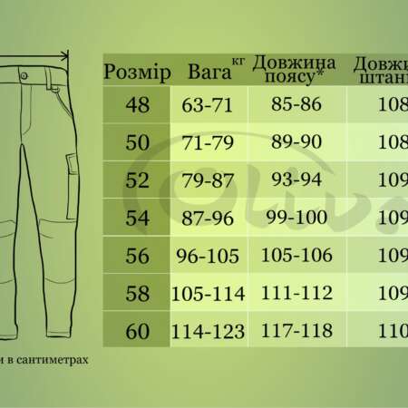 Штани з якісної тканини – дефенса (RIPSTOP) (40% х/б / 60% поліестер), 215 г/м2 , яка витримує екстремальні навантаження і гарно переться не втрачаючи кольору.