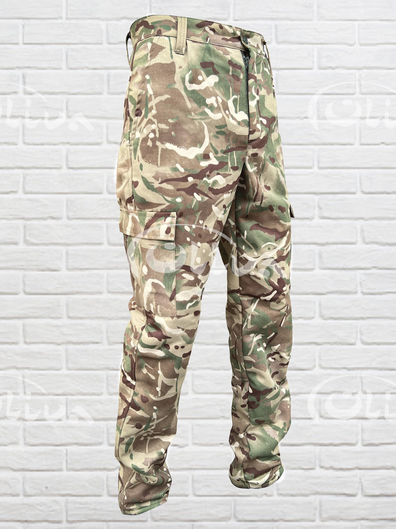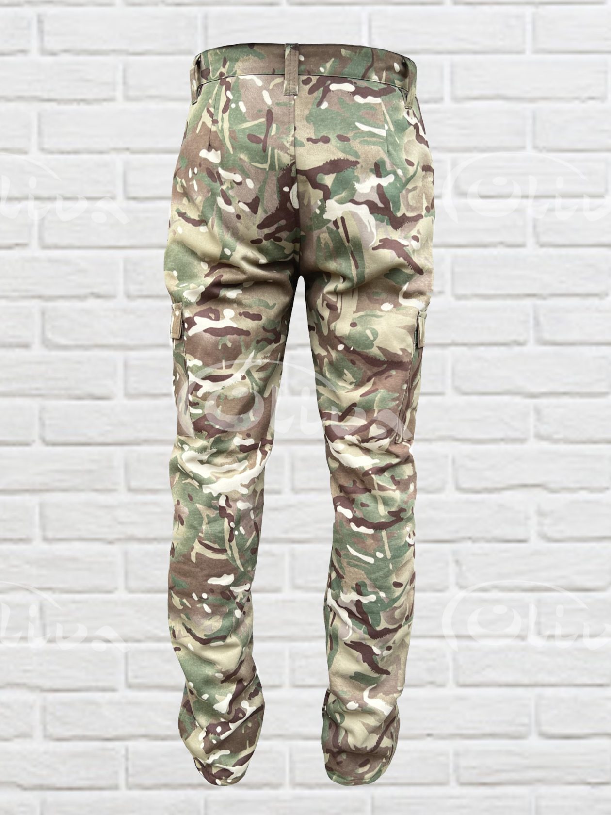 Є дві бічні врізні кишені на стегнах і дві накладні кишені з клапанами на липучках в районі колін.