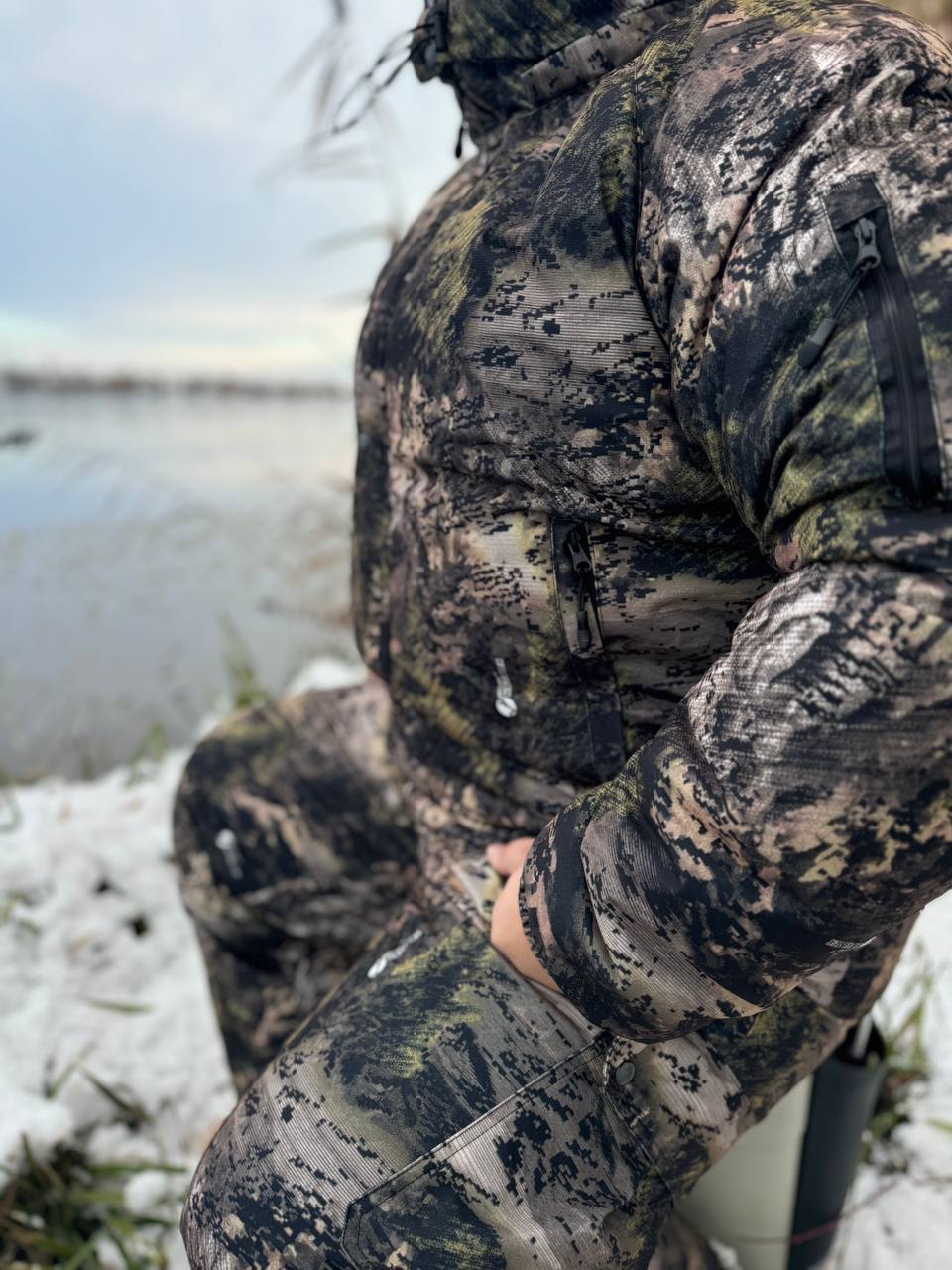 Зимовий костюм з півкомбінезоном для рибалки та полювання. (ліс)