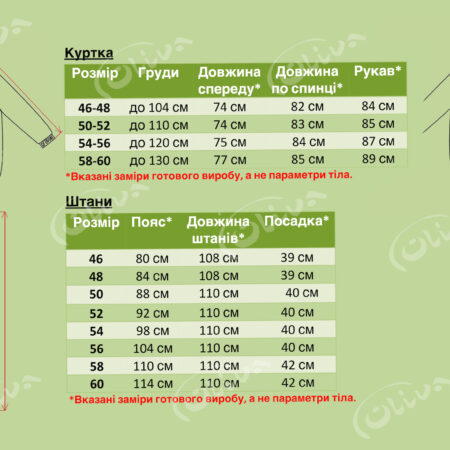• під коліном і низ штанини мають хлястики на липучці для регулювання об”єму.